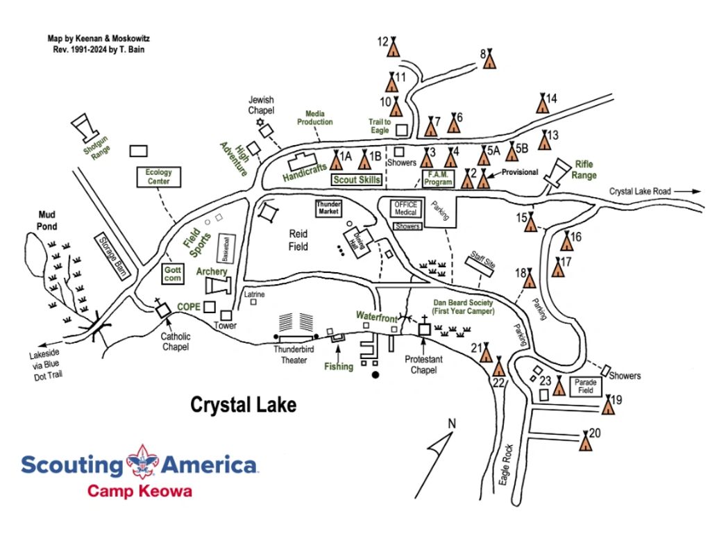 2026 Summer Camp will be Camp Keowa at Ten Mile River Scout Camps, 1481 Crystal Lake Rd, Narrowsburg, NY 12764. Phone (845) 252-2027, email: 640.camping@scouting.org